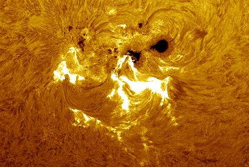 Magnetic fields above giant sunspot 652 erupted on July 22nd. The explosion hurled a coronal mass ejection (CME) into space. Although it is not heading directly toward Earth, the CME might deliver a glancing blow to our planet's magnetic field on July 23rd or 24th. A night light show may be seen in northern Europe, Canada and northern-tier US states like Wisconsin, Minnesota and Washington.